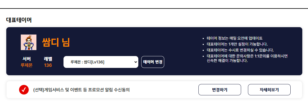 대표 캐릭터 설정